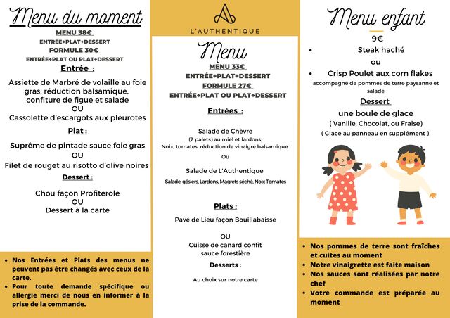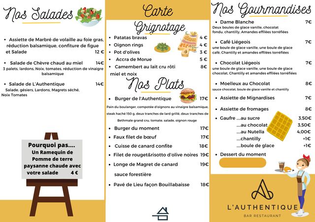 Nos menus sont établi est change en fonction du marché, des producteurs locaux et des saisons.