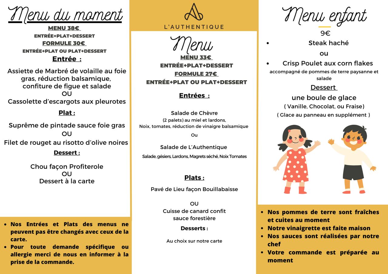 Contactez-nous pour avoir les dernières informations sur nos entrées, plats et dessert du jour.